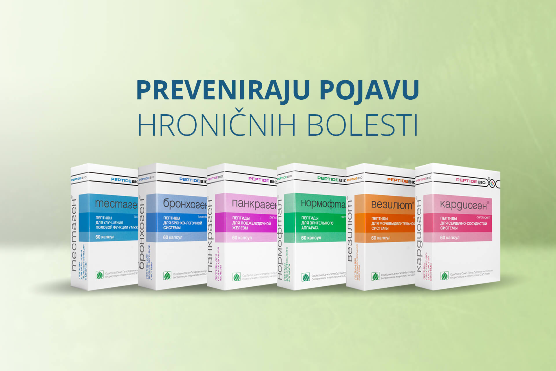 RUSKI PEPTIDI su peptidni bioregulatori – kratki peptidni lanci aminokiselina, inovativni, jedinstveni u svetu preparati za ljudsku upotrebu koji usporavaju starenje time što revitalizuju organe i ublažavaju ili preveniraju pojavu hroničnih bolesti.