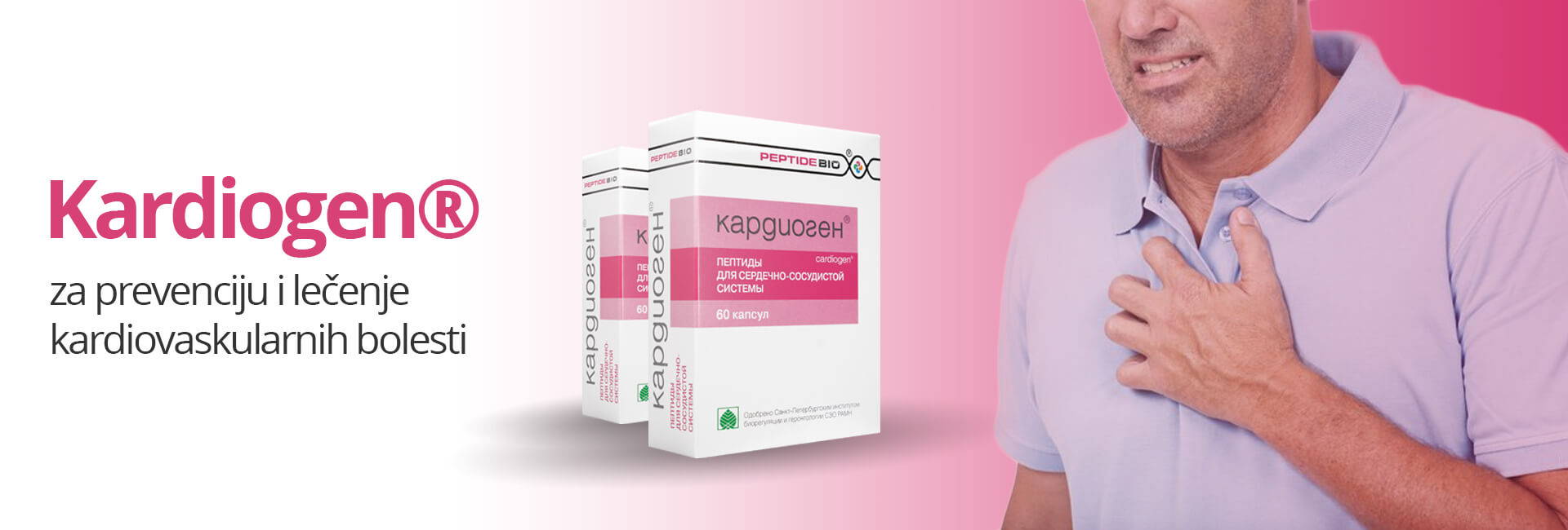 Kardiogen® je peptidni kompleks, sastavljen od amino-kiselina, koji regenerativno deluje na srčani mišić i krvne sudove. Rezultati eksperimentalnih studija i proučavanja Kardiogena® su dokazali da peptidni kompleks koji ulazi u njegov sastav, ima tkivno-specifično dejstvo na ćelije miokarda i ima sposobnost normilizovanja njihove funkcionalne aktivnosti. Kardiogen® je peptidni bioregulator i predstavlja medicinu budućnosti. Kardiogen® je peptid, prirodni preparat koji aktivno učestvuje u razmeni materija. Njegovom primenom značajno se smanjuje učestalost anginoznih napada, redukuje se broj opštih subjektivnih smetnji (malaksalost i smanjena tolerancija na napor) ali i gušenje, povremen bol u predelu grudi, tahikardija, veoma dobre rezultate pokazo posle infarkta. Rezultati kliničkih studija potvrđuju opravdanost primene Kardiogena® uz redovnu kardiološku terapiju pacijenata sa anginom pektoris tip I i II, kao i u profilaktičke svrhe kod osoba odrasle životne dobi. Ima pozitivan efekat na fiziološke aktivnosti srčanog mišića.